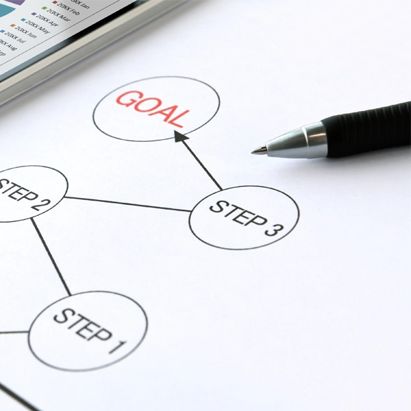 目標設定ツール「目標管理シート」「チャレンジシート」を半年に1回作成。会社や施設が掲げる目標を書き込み、やるべき個人の行動を記入することで、会社や施設の目標実現につながっていることが把握できます。