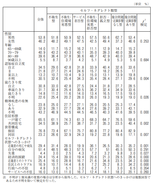高齢者のセルフネグレクト事例の類型化と孤立死との関連より引用